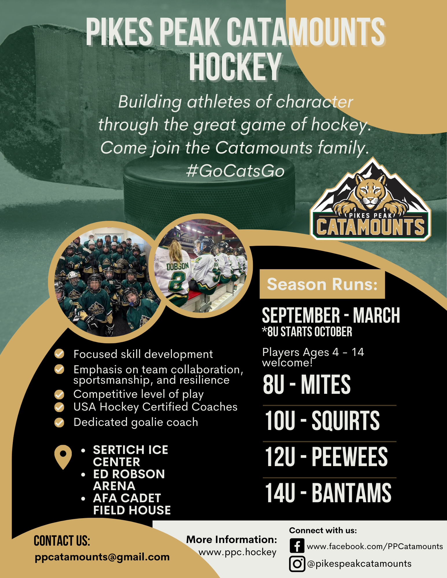 Pikes Peak Catamounts Hockey is an amateur youth hockey organization that calls Sertich Ice Center home: