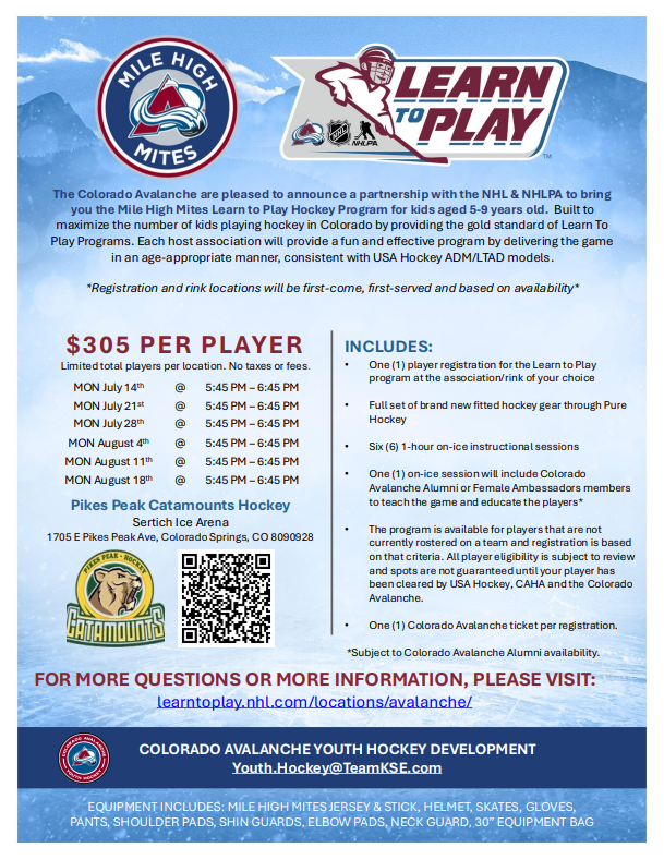The Colorado Avalanche are pleased to announce a partnership with the NHL & NHLPA for the return of the Mile High Mites Learn to Play Hockey program. Built to maximize the number of kids playing hockey in Colorado by providing the Gold Standard of LTP programs.